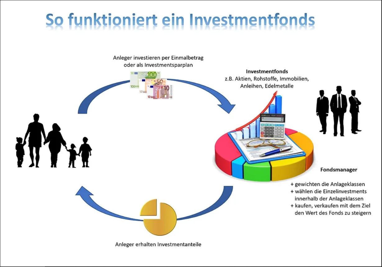 Ein Fond ist eine Art Sammlung von verschiedener Investitionen. Dabei kann es sich um Aktien, Gold, Edelmetalle, Immobilien, Staatsanleihen, Rohstoffe, erneuerbare Energien, Zukunftstechnologien, Medizin u.a. handeln.