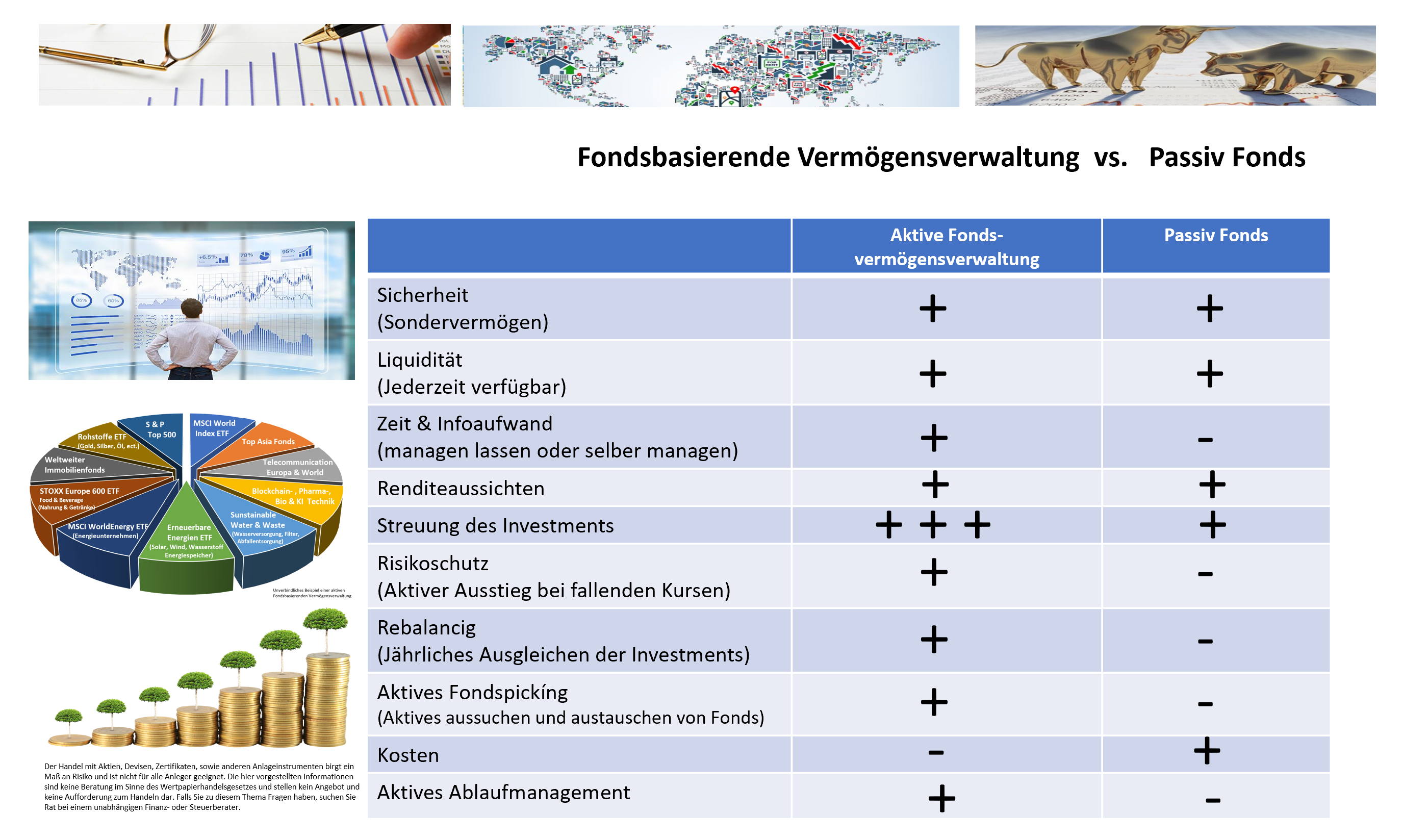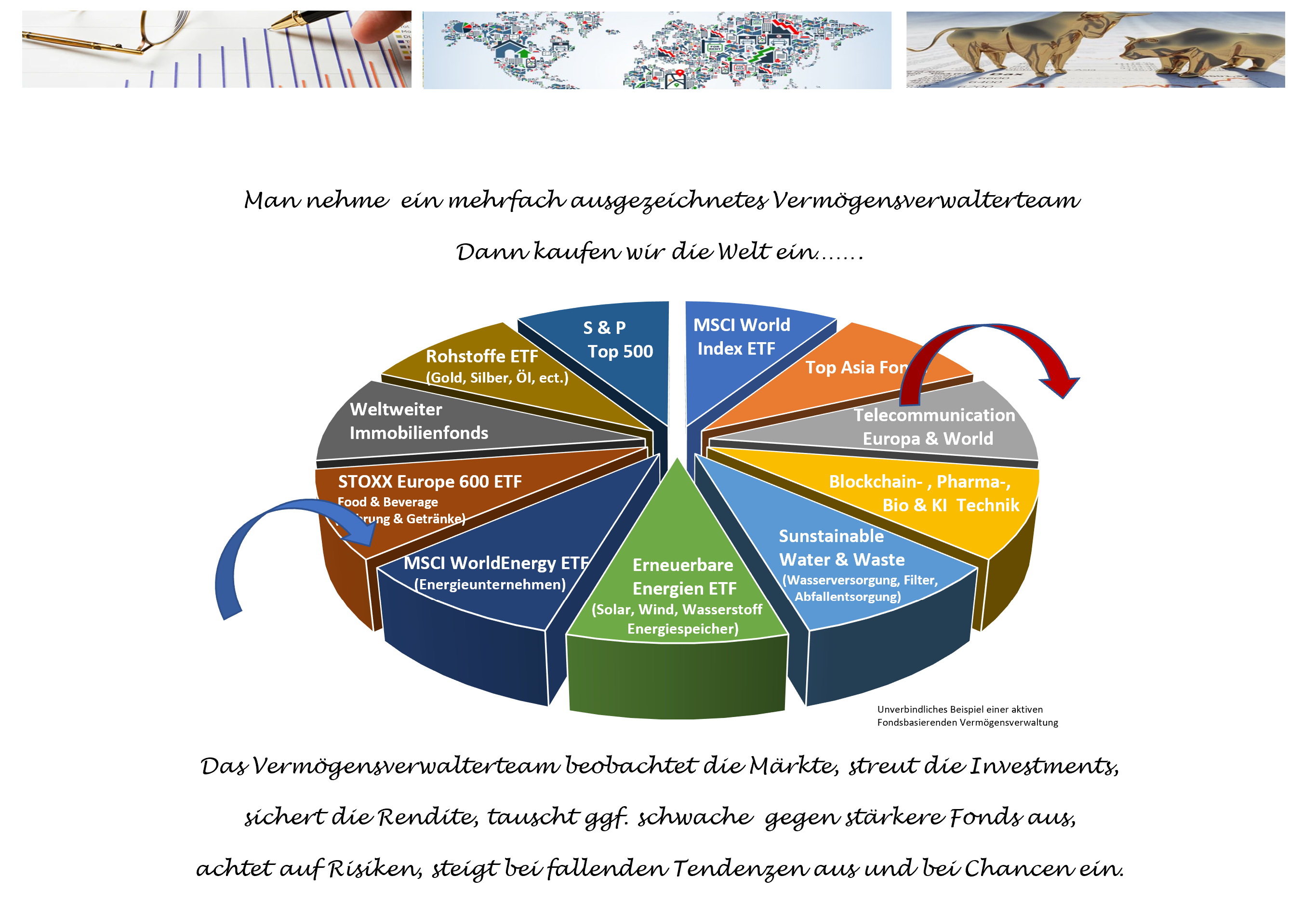 Wer sich nicht ständig um seine Fonds, ETF’s und Aktien kümmern möchte beauftragt eine Vermögensverwaltung